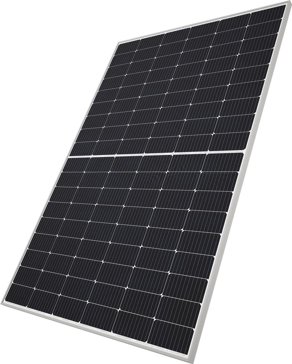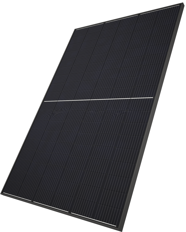 108 half-cell solar panel designed for residential and commercial rooftop photovoltaic systems, with a black frame and black backsheet for uncompromising long-term reliability, performance and aesthetics.